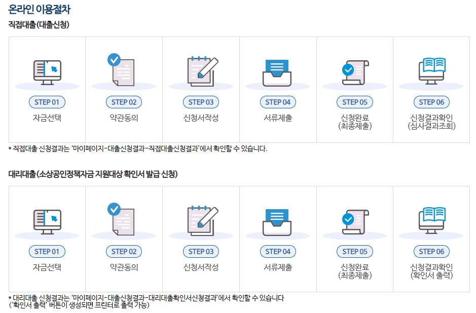 이 두 가지 신청 방법은 소상공인시장진흥공단 홈페이지에서 자금 선택을 통해 진행할 수 있으니, 진행 여부를 확인해주시기 바랍니다.